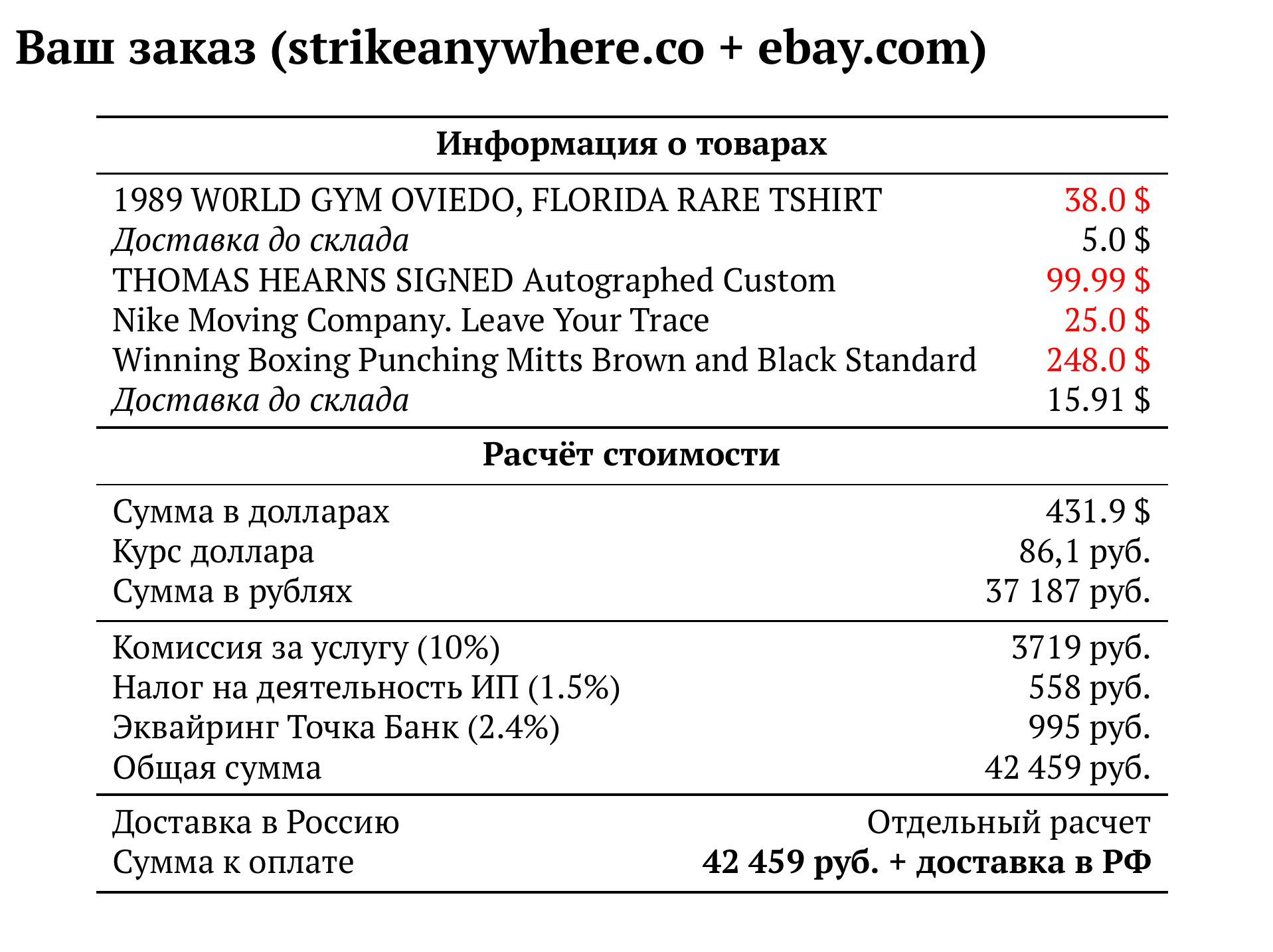 Расчет для strikeanywhere.co + ebay.com — 42 459 руб.