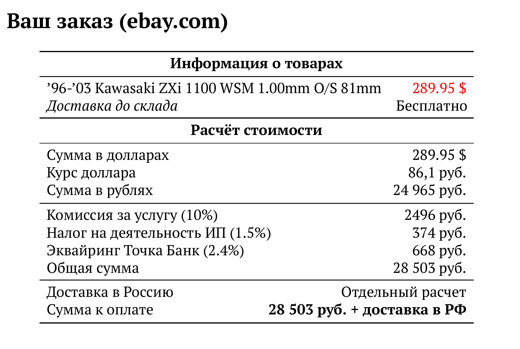 Расчет для ebay.com — 28 503 руб.