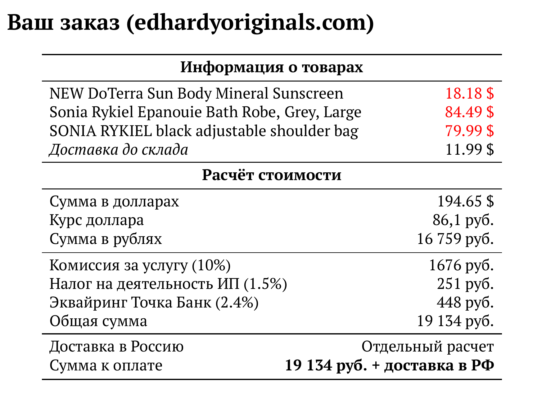 Расчет для edhardyoriginals.com — 19 134 руб.